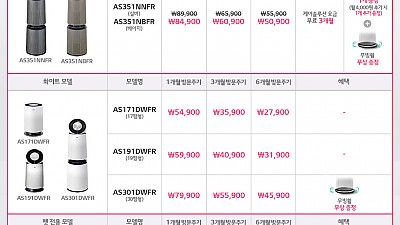 [9월 혜택] LG 정수기 렌탈! 공기청정기! 냉장고! 주방가전! 세탁가전! 안마의자! TV! 제휴할인! 최대혜택!